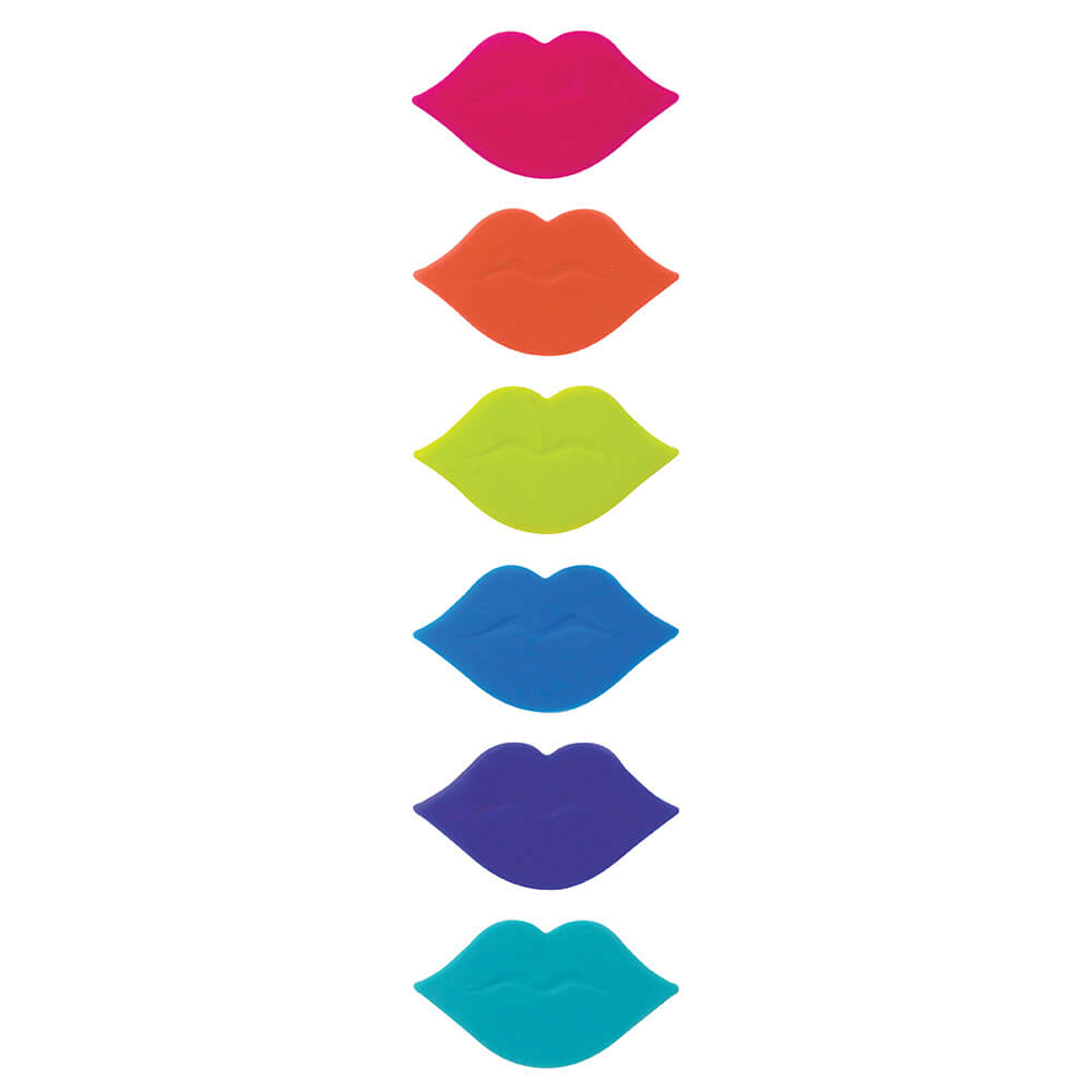 • Set of six lip-shaped markers in different vibrant colors made of durable silicone