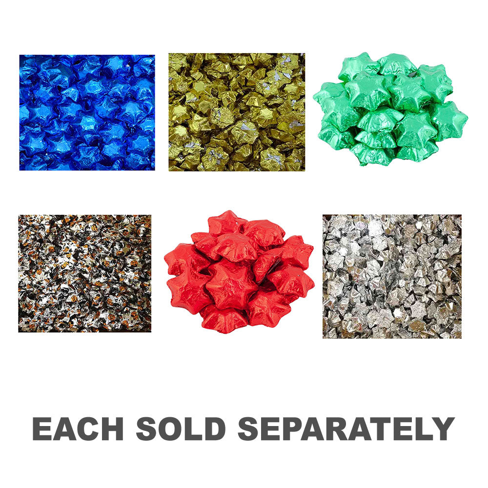 - 5kg package of Belgian milk chocolate stars in a rich dark blue color