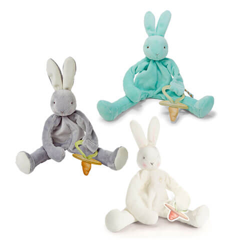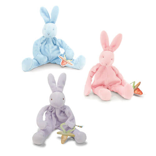 This beautifully crafted 25cm 'Blossom' Bunny Silly Buddy is sure to soothe baby's troubles away with its big floppy ears, delicately embroidered facial details and super-soft velour fabric in a lovely shade of pastel pink. A handy touch fastener loop on Blossom's paw will keep baby's dummy secure, whilst a gentle internal rattle will captivate and delight your little one's ears. Perfect for home or on-the-go, this super-cute companion attaches easily to a cot, pram or car seat for maximum play and comfort value.