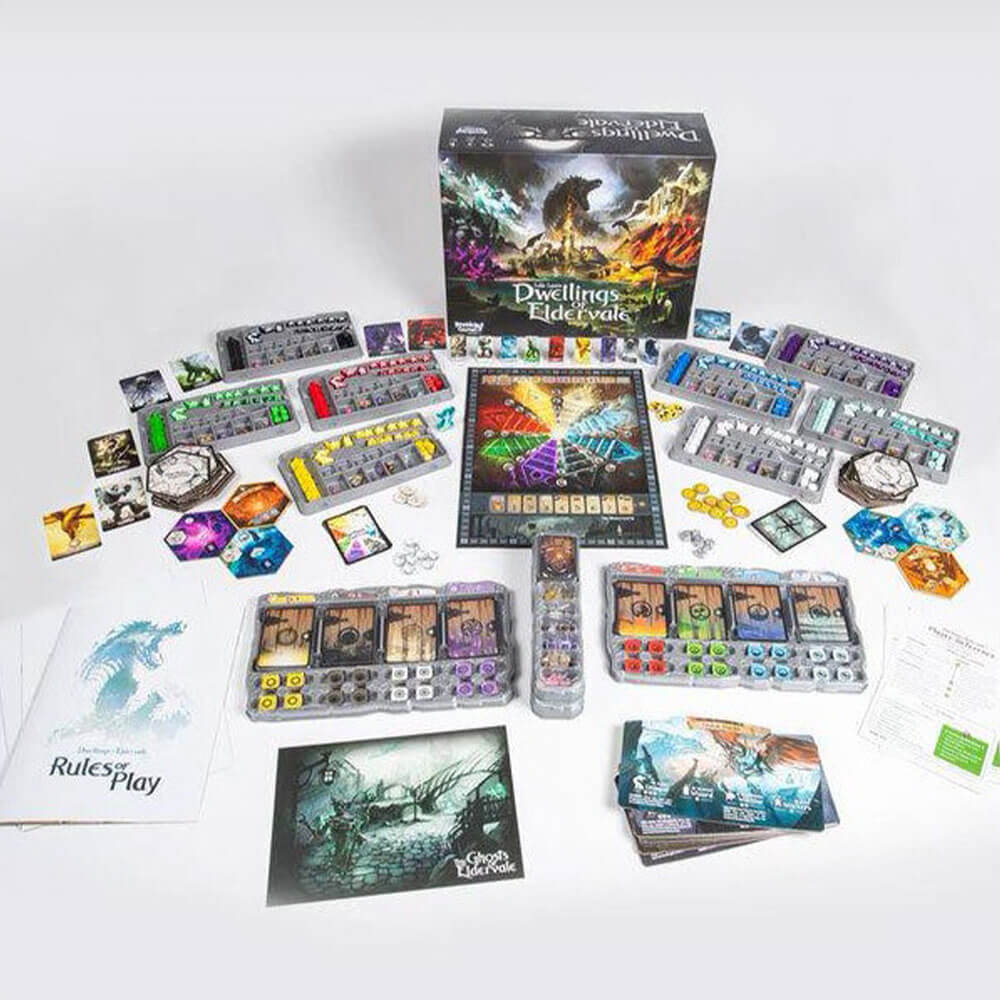 • Dwellings of Eldervale blends worker placement, area control, engine building and unique worker units.
