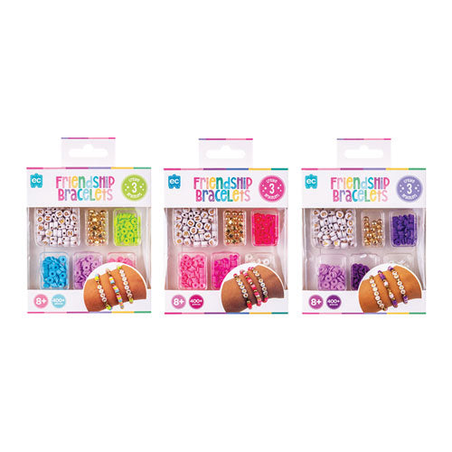 Become the ultimate BFF with this adorable Friendship Bracelet Kit! Packed with everything you need to craft up to three unique bracelets, this set includes a mix of blue, gold, and alphabet beads to personalise your designs. With 300 polymer clay beads, 12 star beads, 12 round beads, 83 alphabet beads, and three elastic threads, the creative possibilities are endless.