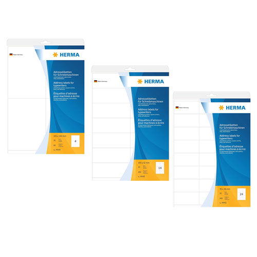 Embrace retro style with Herma Typewriter Address Labels! This pack includes 20 A4-sized labels designed specifically for typewriters, adding a touch of nostalgia to your labeling tasks. With a white finish for clear, professional-looking prints, these typewriter labels offer convenience and vintage charm for address labels, shipping labels, or organizational tasks. Whether for personal correspondence or decorative projects, these Herma labels bring a classic touch to your labeling endeavors. Get ready to channel the elegance of yesteryear with Herma Typewriter Address Labels!