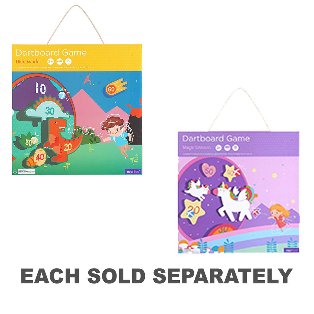 A roar-some way to play and learn! The Dartboard Game -- Dino World Board features a soft fibre dartboard and six balls, perfect for safe indoor fun. Kids can practice their aim, play in teams, and learn numbers through active play. Hang it on a wall or door for hours of dino-themed excitement!Great for parties, playdates, or quiet time at home, this game supports hand-eye coordination, number recognition, and social interaction--all in a screen-free format.For Ages 3yrs+Pack Dimensions (cm): H: 5 W: 37 L: 37