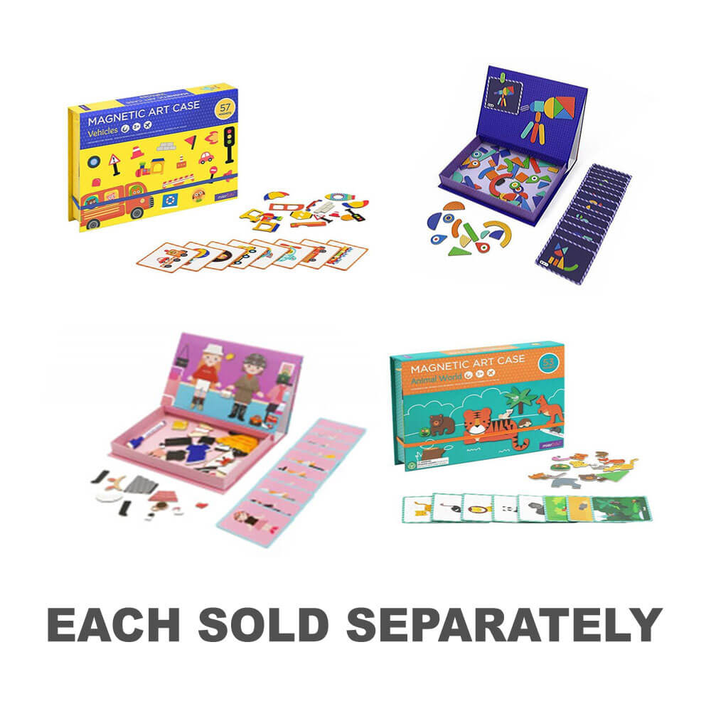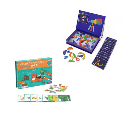 An Educational magnetic game in a case on the vehicle theme to stimulate children's imagination and inspire little ones to create their own stories using magnets. This case is conveniently packed in a handy way and easy to carry around during travel, at car and on the go. Once the case is opened, it can be "transformed" into a large wipe-clean board, allowing kids to draw their stories.