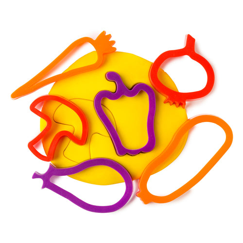 Mimicking the style of cookie cutters, our bright and lively set is tailor-made for materials such as dough, plasticine, and clay. Each cutter, coloured and detailed to resemble its vegetable inspiration, allows children to create realistic renditions of their favourite greens and root vegetables.