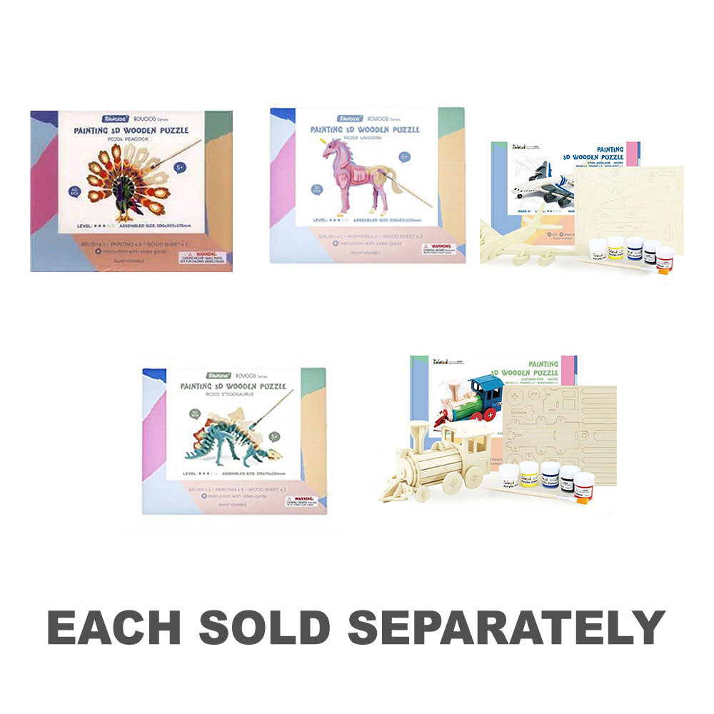 - Le puzzle en bois est également inclus avec des gousses de peinture et un pinceau. Tout ce dont vous avez besoin dans un seul kit!