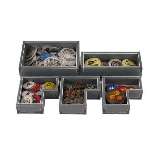 • Insert compatible avec Robinson Crusoé® et le Voyage du Beagle Vol. 1 ® extension. La conception offre à la fois un stockage efficace et un jeu amélioré. Les plateaux peuvent être utilisés pendant le jeu, et ils facilitent grandement les temps d'installation et de dégagement. Les règles et les planches agissent comme un couvercle sur le dessus des plateaux. Ce produit se compose d'un paquet plat de 4 feuilles Evacore. Les plateaux nécessitent un assemblage rapide et ludique avec de la colle PVA ordinaire. Des instructions détaillées sont incluses dans l'emballage. Remarque : Insert conçu pour le jeu avec des dimensions extérieures de boîte de 29,4 x 29,4 x 7,2 cm.