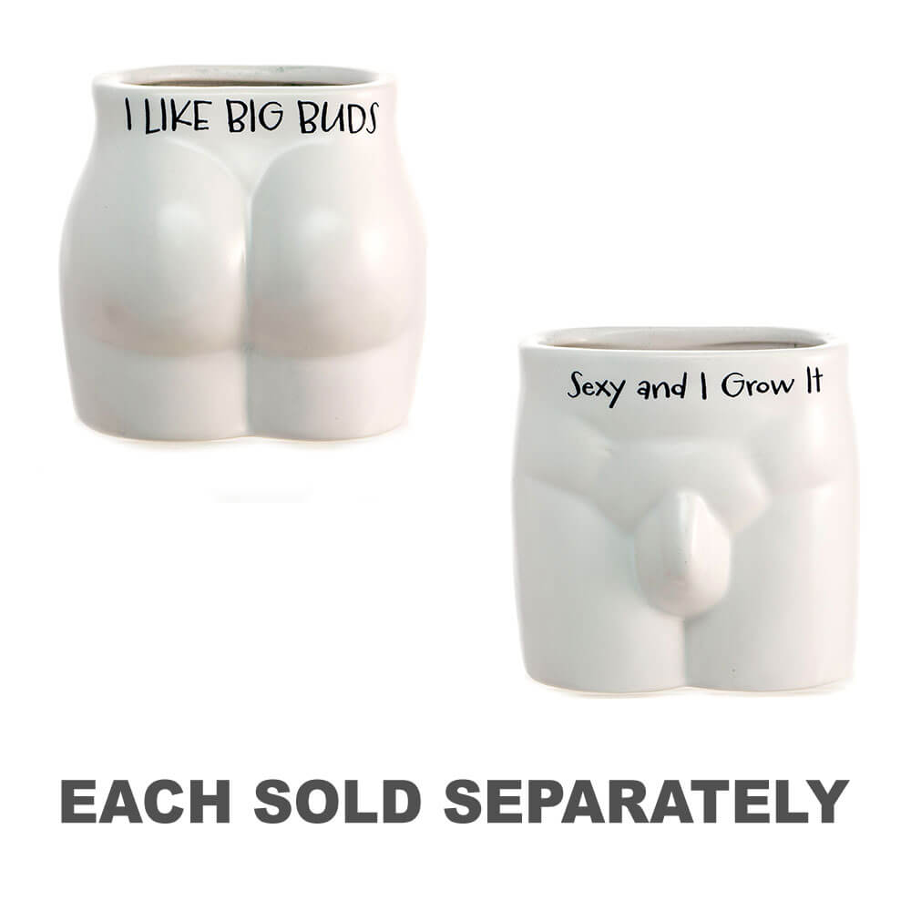 • Ce pot effronté a la forme de l'anatomie féminine, et avec un texte graphique impressionnant qui dit `` j'aime les grosains ', ce drôle de pot de plante est un super cadeau unique pour les amis le jour de leur anniversaire! Parfait en tant qu'accessoire de bureau ou un sujet de discussion idiot dans la maison, ce pot est une façon fabuleuse d'ajouter un peu de plaisir à votre feuillage!