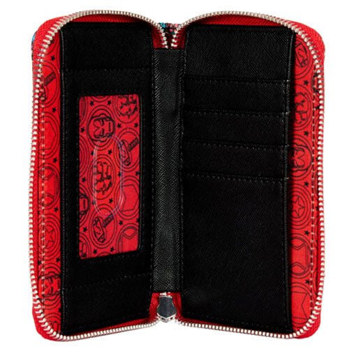 Les Avengers se sont définitivement assemblés sur le portefeuille zippé Loungefly Marvel Avengers Tattoo ! Certains de vos super-héros de bandes dessinées préférés ont été réinventés avec une touche de style tatouage classique, ainsi que des étoiles et des motifs floraux. Sauvez la journée avec Captain America, Hulk, Iron Man et bien d'autres - avec style !