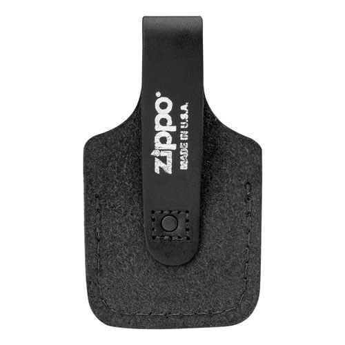 La pochette pour briquet Zippo en cuir véritable noir avec encoche pour le pouce a un design élégant, mais est facilement accessible. Les caractéristiques de cette pochette pour briquet comprennent une encoche pour le pouce pour retirer facilement tout briquet coupe-vent Zippo, une large boucle en cuir qui s'adapte aux ceintures jusqu'à 2" de large et maintient en toute sécurité tout briquet coupe-vent Zippo. Livré emballé dans une boîte Zippo noire.