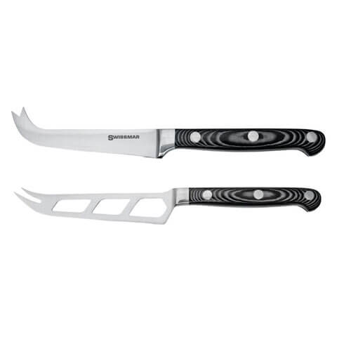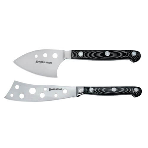 Couteaux de fromage de construction en acier inoxydable forgé Swissmar Lux pour une résistance supplémentaire et les poignées Micarta ajoutent un look distinctif et élégant. Parfait pour les fromages plus durs tels que le parmesan et Romano.