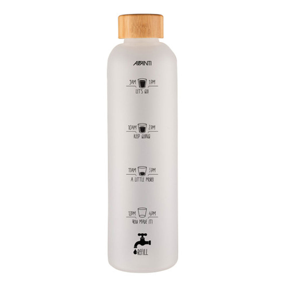 Resta idratato e seguirai facilmente l'assunzione di acqua quotidiana con la bevanda adato più bottiglia d'acqua in vetro di velluto d'acqua. L'esterno è contrassegnato da frasi motivazionali insieme a segnali orari, per ricordare non solo quando, ma anche quanto bere da bere per tenerti in pista per raggiungere i 2L di acqua raccomandati ogni giorno. Leggero e resistente, è realizzato in vetro borosilicato di alto grado che non è poroso e non tossico. Presenta un rivestimento a spruzzo in silicone all'esterno, fornendo una superficie non slittata per la presa definitiva, nonché una protezione aggiuntiva contro le rotture. La vite sul coperchio è realizzata in bambù di provenienza sostenibile ed è a prova di perdite, rendendo ottimo per il lavoro o in movimento.