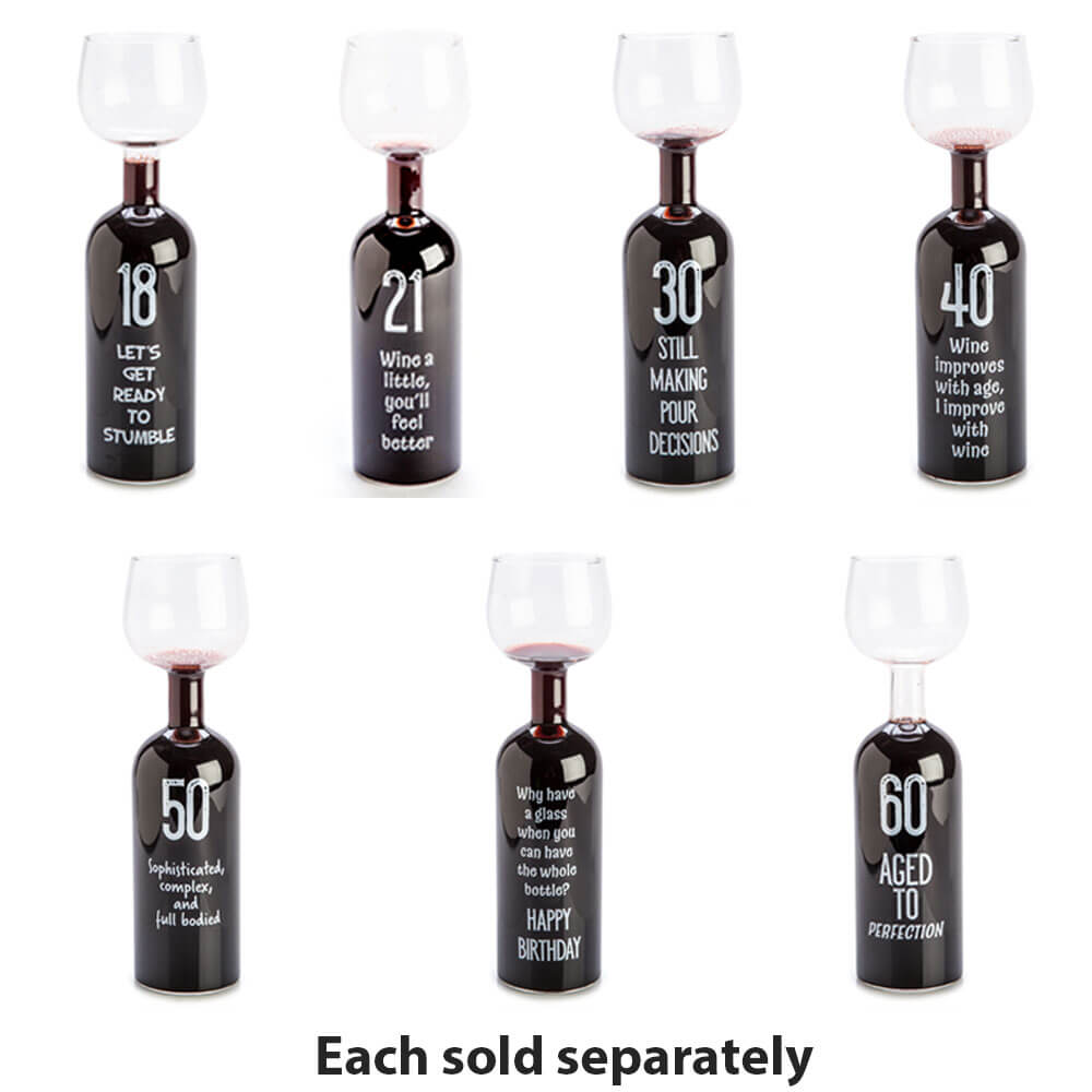 Questa edizione del bicchiere di bottiglia di vino presenta anche diverse frasi di compleanno per aggiungere davvero un po 'di talento personale ai tuoi doti di donazioni - dal 18 al 60esimo messaggi di compleanno personalizzati! Con una base di una bottiglia di vino e un bicchiere di vino di classe in cima, è facile e comodo da bere o addirittura versare dal bicchiere da bottiglia di buon compleanno.