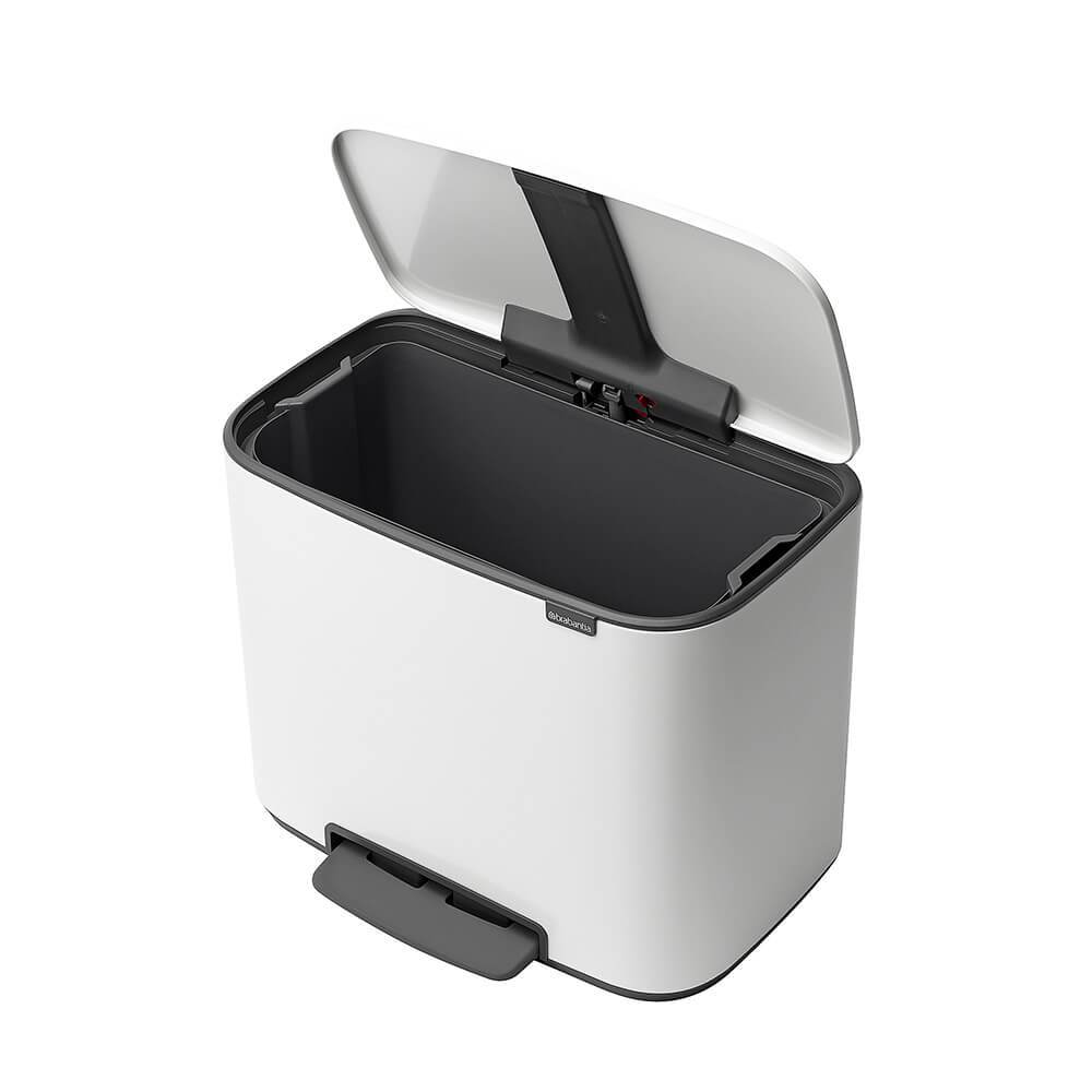 Cerchi una soluzione di scarto che corrisponda al tuo stile? Questo bidone del pedale Brabantia Bo 36 litri è bellissimo all'esterno e all'interno. È risparmio di spazio, ha un funzionamento del pedale igienico e il coperchio si chiude delicatamente quando hai finito. Questa bellezza efficiente dello spazio si adatta anche a stretto contatto al muro, quindi la gestione dei rifiuti non ostacolerà il tuo stile di vita. Scegli Bo!