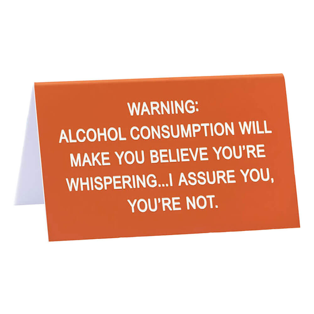 Rompere la monotonia del lavoro e portare alcuni lol in ufficio con questo segno spiritoso da dire cosa?. La didascalia recita: "Avvertenza: il consumo di alcol ti farà credere che stai sussurrando ... ti assicuro, non lo sei".