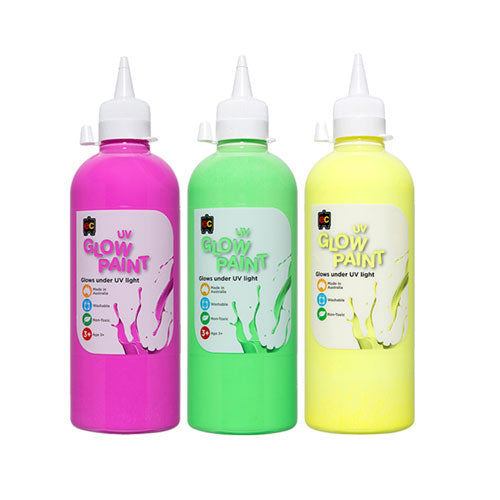 Experience the magic of the UV Glow Paint, a stellar addition to any artist's repertoire. With a generous 500ml volume, this paint is meticulously formulated to emit a striking fluorescence under ultra-violet light. Whether you're setting the stage for an unforgettable school drama scene or diving into an artistic craft project, this paint promises to make a lasting impression.