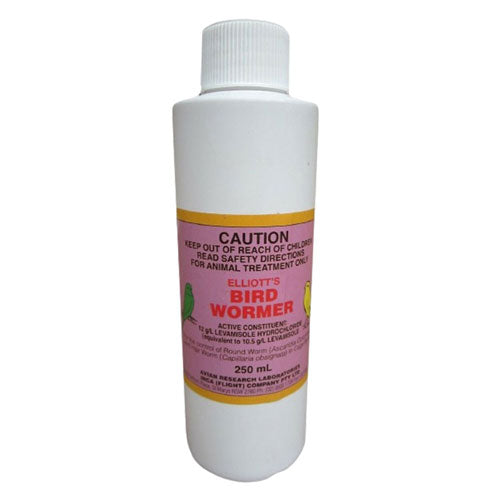 Eleva la tua routine di cura degli uccelli con Elliotts Bird Wormer - 250 ml. Questa dimensione più grande della bottiglia ti assicura di avere un'ampia scorta di wormer a portata di mano, perfetta per aviarie più grandi o più specie di uccelli.