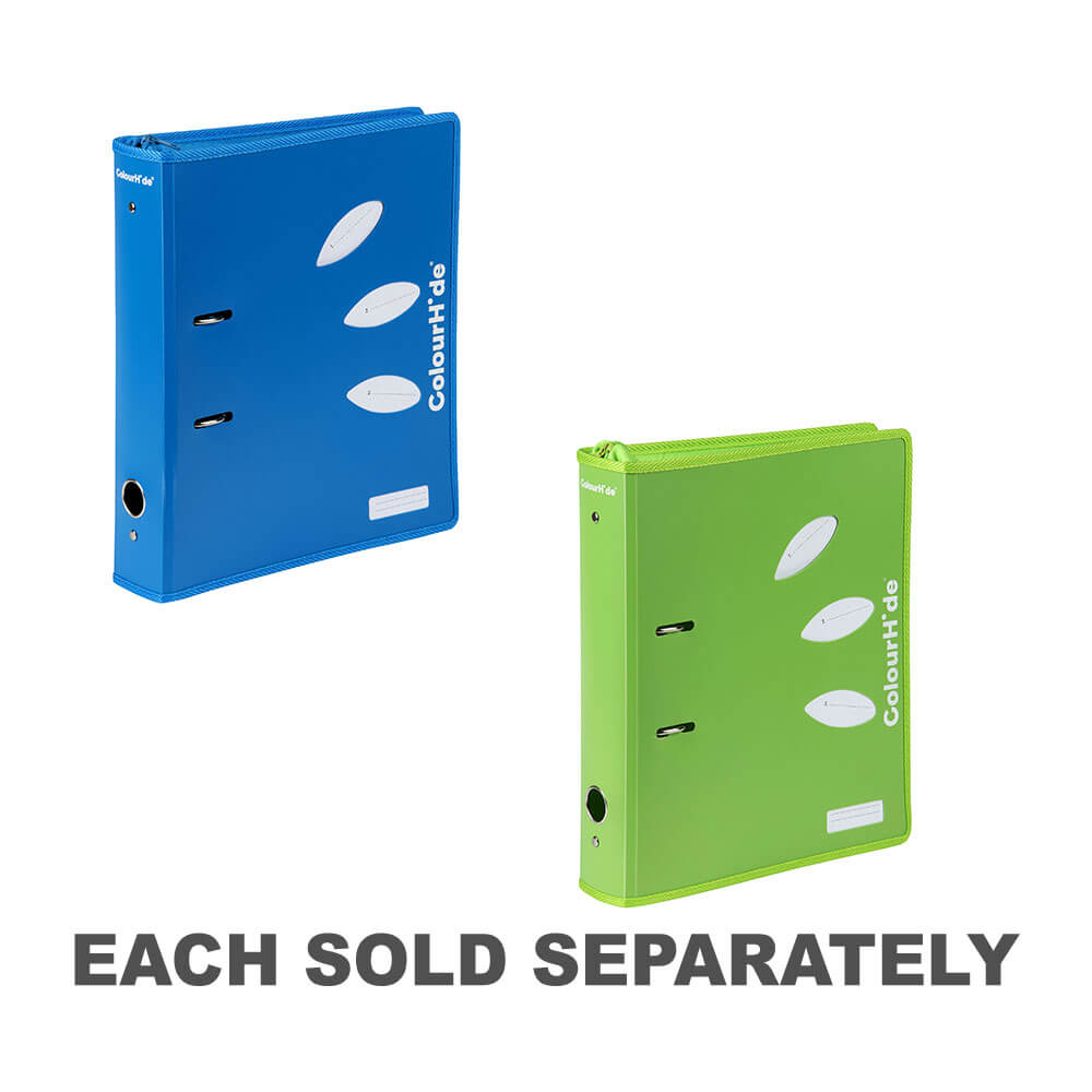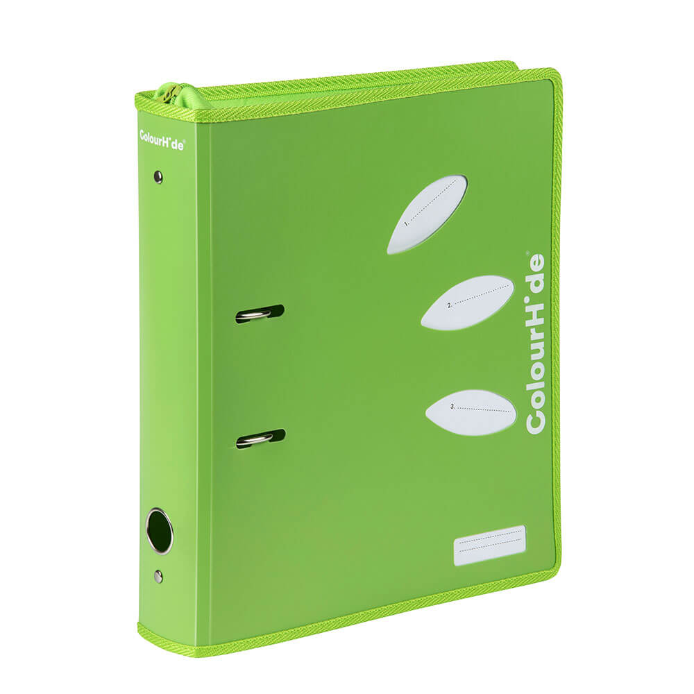 File ad arco a leva - Colourhide - A4 - 70mm - Zipper - Green Questo file ad arco a leva con cerniera da 70 mm è stato progettato e realizzato con materiale polipropilene a lunga durata, è resistente all'umidità e ha una funzione con cerniera per una maggiore sicurezza