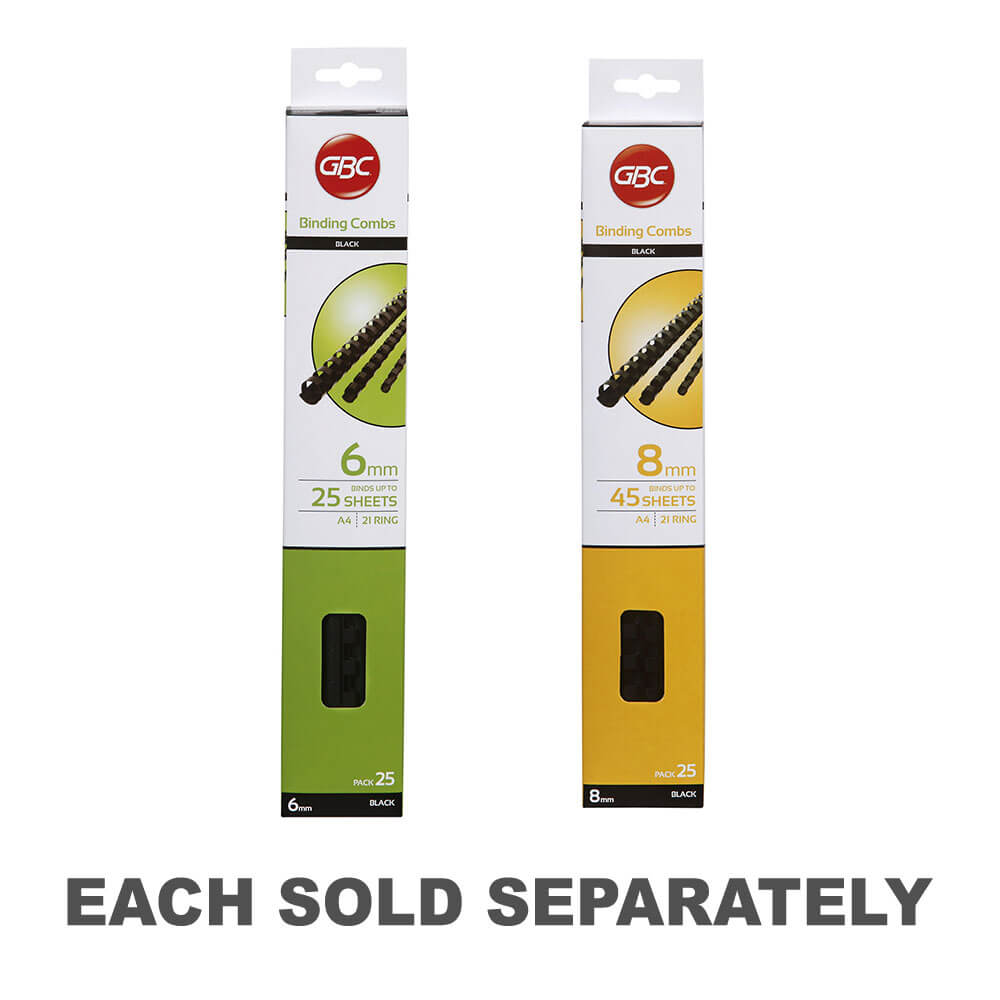 Questi pettini vincolanti in plastica GBC sono forti e resistenti e aggiungono un ottimo tocco di finitura a una serie di documenti tra cui presentazioni, report e progetti per l'uso della scuola o della casa. I pettini in plastica GBC da 6 mm hanno 21 loop che contiene in modo sicuro fino a 25 fogli di carta A4.