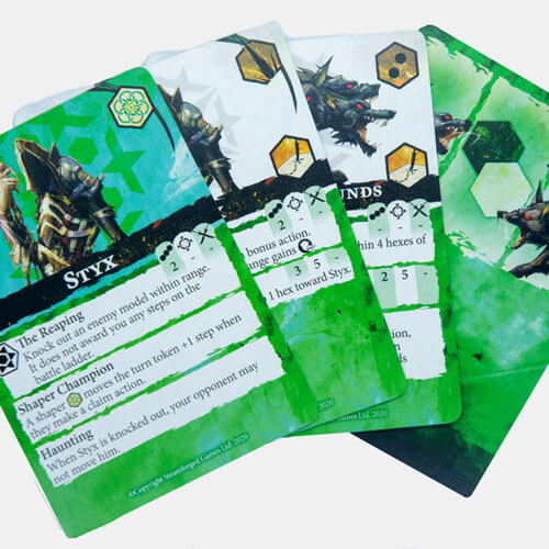 • Include 1x styx, segugi abissale 2x, banner 1x Styx, schede del profilo 3x