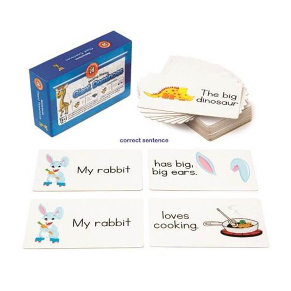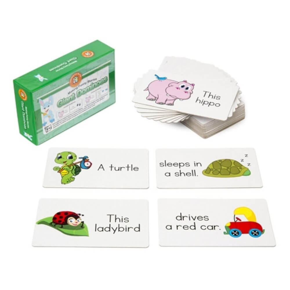 Questi apprendimenti possono essere divertenti ancora a fare storie è divertente che Domino è un ottimo strumento di apprendimento che può essere usato per conoscere la costruzione di frasi. Ogni frase viene divisa in 2 sezioni e può essere abbinata al finale corretto o puoi diventare creativo e abbinarla a un altro finale. Questi possono essere usati all'interno o all'aperto poiché il tappetino di stoffa è supportato da vinile che può essere facilmente pulito.