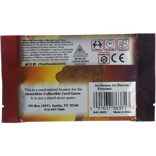Eric Lang e Kevin Wilson offrono qualcosa di nuovo nell'universo di Munchkin: un nuovo gioco di carte da collezione che regge al gioco di livello competitivo, ma mantiene ancora la sciocchezza sciocca per la quale Munchkin è famoso. Munchkin Collect Card Game è un gioco di combattimento in cui 2-4 giocatori di livello di turno dopo il turno, metti in gioco il bottino per darci benefici e attacca (o attacchi bluff!) Oltre all'altro. Elimina prima l'altro giocatore e vinci! Nelle parole del co-designer Eric Lang, "Munchkin TCG è un gioco molto diverso da Munchkin. Immagina tutto il fantastico umorismo di Munchkin come un breve e competitivo Slugfest head a testa" il gioco delle carte sarà distribuito come due- fisso a due- fisso a due- Set di avviatori del giocatore ed espansioni di booster randomizzate.