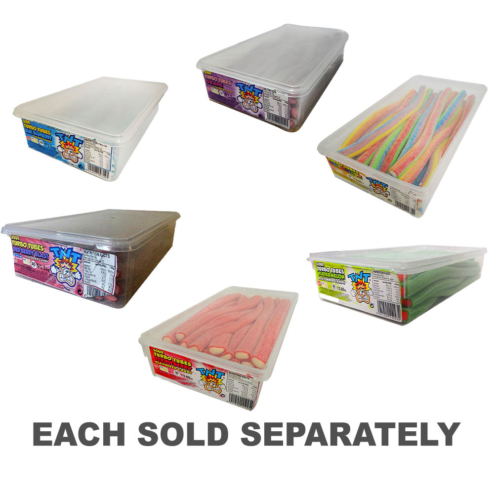 TNT Sour Turbo Tubi in sapore di anguria che offrono un'esperienza di caramelle a labbra e frutta. Ogni tubo turbo è riempito con caramelle al gusto di anguria acra che solleverà sicuramente le tue papille gustative. Pieno di divertimento, questi tubi TNT Aumenta di Watermelon Turbo sono un tubo rosa morbido ma gommoso avvolto in un tubo esterno verde rivestito con zucchero acido. Queste caramelle offrono una combinazione di intensa acidità e sapore di anguria dolce, rendendole una delle preferite tra gli appassionati di caramelle acide. Sia che ti piaccia come uno spuntino piccante o che li condividi con gli amici, TNT Sour Turbo Tubi in sapore di anguria offrono un'avventura di caramelle emozionante e saporita.