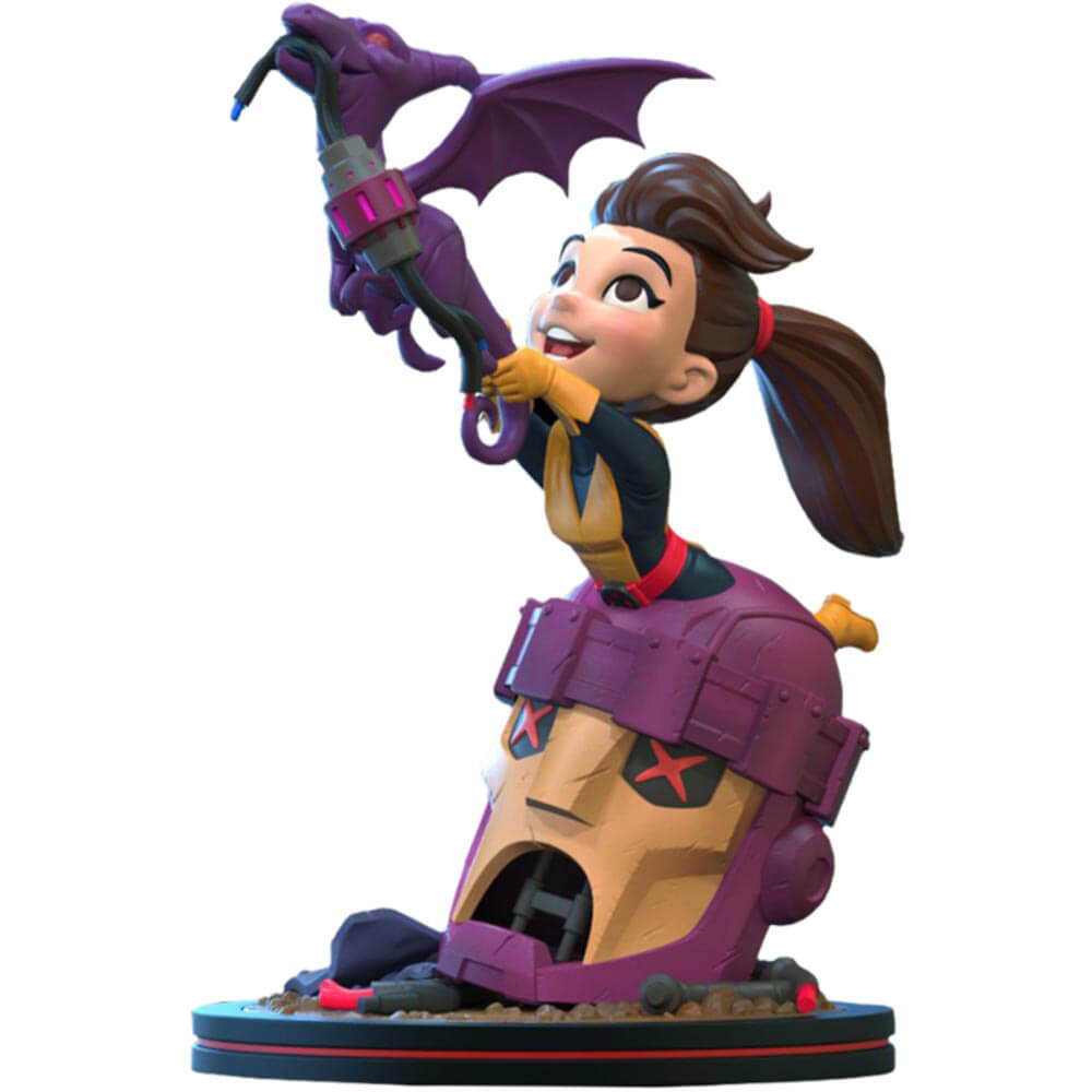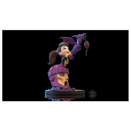La figura in vinile di Kitty Pryde e Lockheed Q-Fig diorama si trova circa 5 pollici di altezza su una base di diorama a tema sentinella, con un'apparizione speciale per gli ospiti dell'adorabile Lockheed.