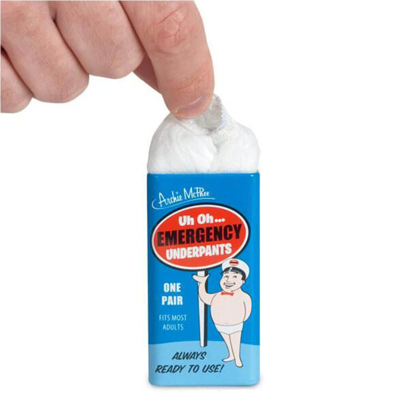 LASS DIR DEINEN TAG NICHT DURCH VERSCHMUTZTE UNTERHOSE VERRUHEN! Lassen Sie sich nicht von verschmutzten Unterhosen den Tag verderben! Mit dieser praktischen Notfall-Unterhose sind Sie auf jeden vorzeitigen Unterhosen-Vorfall vorbereitet. Besser sicher als matschig! Jede 3" x 1-1/2" x 3/4" (7,6 cm x 3,8 cm x 1,9 cm) Dose enthält ein Paar Einweg-Unisex-Unterhosen aus 50 g/m² Polyestervlies. Passend für die meisten Erwachsenen.