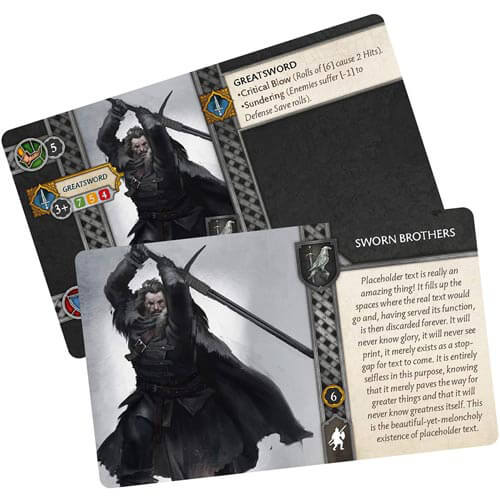 Die Sworn Brothers Unit Box bildet die Kernkraft für die Nachtwache im A Song of Ice and Fire: Tabletop Miniatures Game. Ihre starke Panzerung lenkt Schläge ab und ihr Training hält sie davon ab, leicht davonzulaufen. Auf der offensiven Seite der Waage ist ihr Können mit dem Großschwert unübertroffen, sie führen kritische Treffer aus und zerreißen selbst die härtesten feindlichen Rüstungen. In der Zwischenzeit ermöglicht der Watch Captain Attachment der Einheit, der Einheit zwei Gelübde gleichzeitig zuzuweisen.