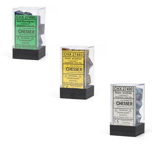 Signature-Würfel sind eine Zusammenstellung der meistverkauften Farben neuer Würfel, die in den letzten Jahren herausgebracht wurden. Es umfasst eine große Auswahl an Farben und Materialien, aber jedes ist eine einzigartige und interessante Ergänzung für jede Würfelsammlung. Dieses Set enthält einen d20, einen d12, zwei d10 (00-90 und 0-9), einen d8, einen d6 und einen d4.