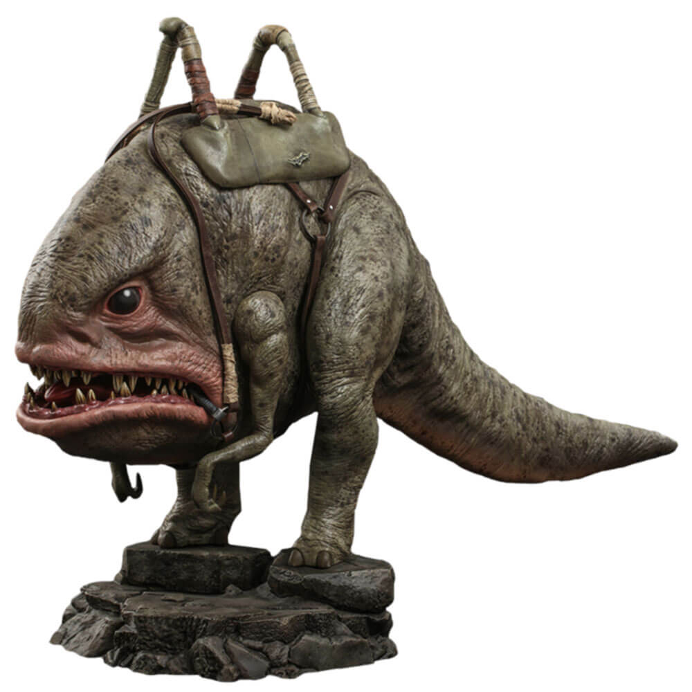 • Die Blurrg Hot Toys Actionfigur im Maßstab 1:6 wurde authentisch nach dem Vorbild der Kreatur aus Star Wars: The Mandalorian gefertigt und zeigt handbemalte Details mit einem kunstvoll geformten Kopf und Körper sowie beweglichen Beinen und Armen. Blurrg misst gewaltige 14,5 Zoll in der Höhe und 23,6 Zoll in der Breite und wird außerdem mit einer felsigen Ausstellungsbasis und einem Sattel geliefert, damit der Mandalorianer auf dem furchterregenden Tier reiten kann.