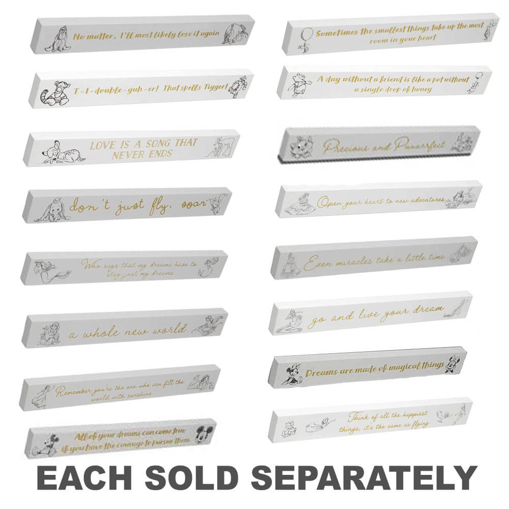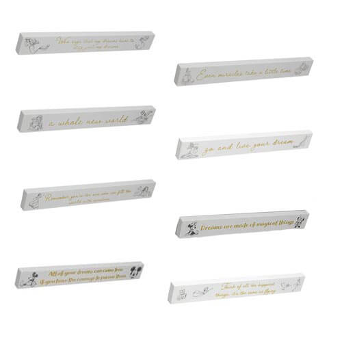 Bringen Sie mit dieser sammelbaren Cinderella-Schreibtischtafel ein paar Worte der Disney-Weisheit in jeden Raum. Diese bezaubernde weiße 40-cm-Plakette zeigt Illustrationen von Aschenputtel und ein mit Goldfolie überzogenes Zitat/Gefühl. Die Bildunterschrift lautet: Selbst Wunder brauchen etwas Zeit.
