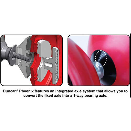 • AUSTAUSCHBARE LAGER: Diabolo-Spieler müssen sich nicht länger zwischen einem Diabolo mit fester Achse und einem 1-Wege-Lager entscheiden. Das einzigartige austauschbare Lagerdesign von Duncan Phoenix Diabolo ermöglicht es Ihnen, die Knöpfe der Achsen einfach von Hand anzuziehen, um die Achsen zwischen fest und drehend zu wechseln.