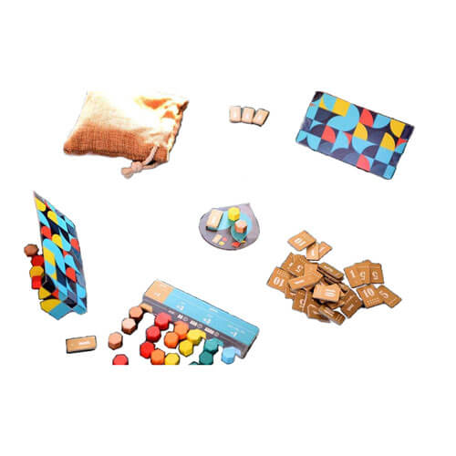 - Enthält 80 Holzteile, 1 Stoffbeutel, 4 Trennwände, 1 Fafnir-Brett, 45 Punktechips, 1 Müllbrett und Spielanleitung.