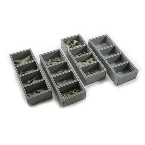 Dieser Einsatz ist so konzipiert, dass er mit Star Wars Rebellion® und der Erweiterung Rise of the Empire® kompatibel ist. Das Design bietet sowohl eine effiziente Speicherung als auch ein verbessertes Spielerlebnis. Viele der Tabletts können während des Spiels verwendet werden und erleichtern den Auf- und Abbau erheblich. Die Regeln und Bretter fungieren als Deckel auf den Tabletts.