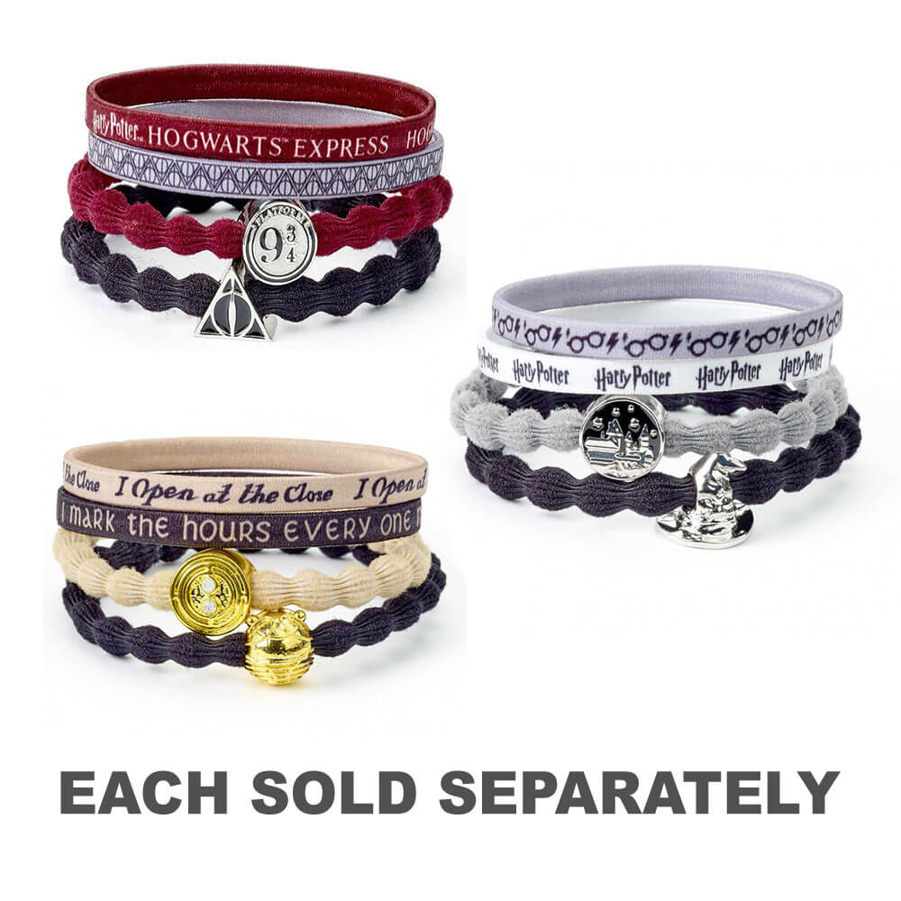 Zwei wesentliche Teile der Harry-Potter-Geschichte sind in diesem Haarband-Set enthalten. Gleis 9 3/4 am Bahnhof Kings Cross, wo die Reise beginnt, und die tödlichen Heiligtümer des Todes, die nur wissentlich von Harry Potter kontrolliert werden.