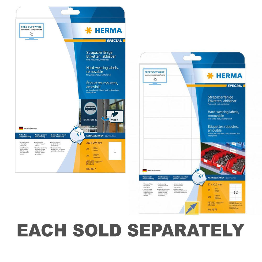 • Apply and remove these durable A4-sized white labels without leaving residue.