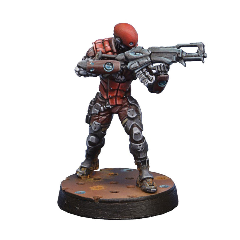 Hier kommt die Neugestaltung des berühmtesten Soldaten der Nomads Army-Liste, das Must-Have für jeden Spieler dieser Fraktion. Mit einer großen Reichweite und einer mächtigen Waffe, Multispectral Visor L2 und Camouflage, ist dieser Elite-Soldat das Paradigma der Kampfeffektivität.