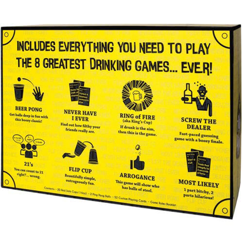 • 23 TRINKSPIELE: Darunter Klassiker wie Beer Pong, Ring of Fire, Never have I Ever, sowie das älteste Trinkspiel der Welt „Jiuling“