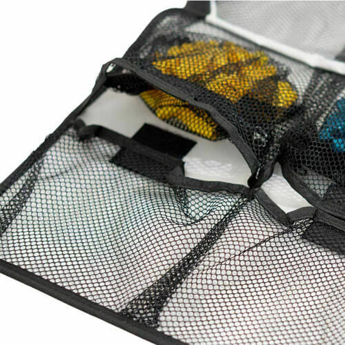 - 16 Netztaschen mit Klettverschluss und 16 passende Netztaschen mit Reißverschluss.