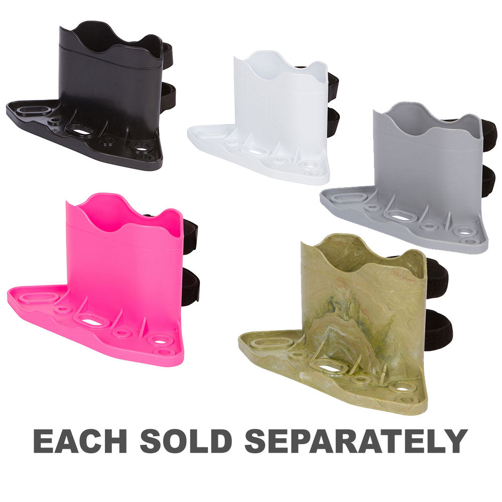 Das Holster kann auch auf einem Schreibtisch platziert oder an den meisten festgeschnallt werden Rohre.