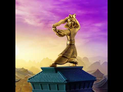 Die chinesische Legende von Mulan aus dem 6. Jahrhundert ist sehr beliebt und erzählt die Geschichte eines mutigen Mädchens, das den Platz ihres alten Vaters einnimmt, als die Armee ihn zum Militärdienst einberuft. In Disneys animiertem Spielfilm von 1998 enthüllt Reflection Mulans Dilemma, das zu sein, was die Gesellschaft von ihr erwartet, und nicht das, was sie für ihr wahres Selbst hält. Eine mit 24-karätigem Gold vergoldete Mulan aus Zinn stellt sich ihrem Gegner auf dem Dach eines Palastes aus Kompositharz in blaugrüner Ausführung.