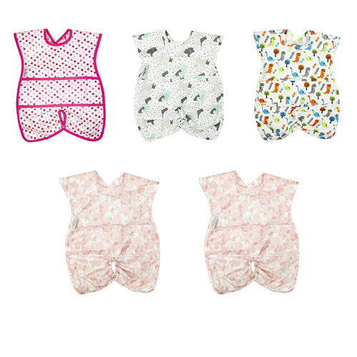 The Highchair Hugger Bib range attaches to your highchair to catch mess before your floor does!