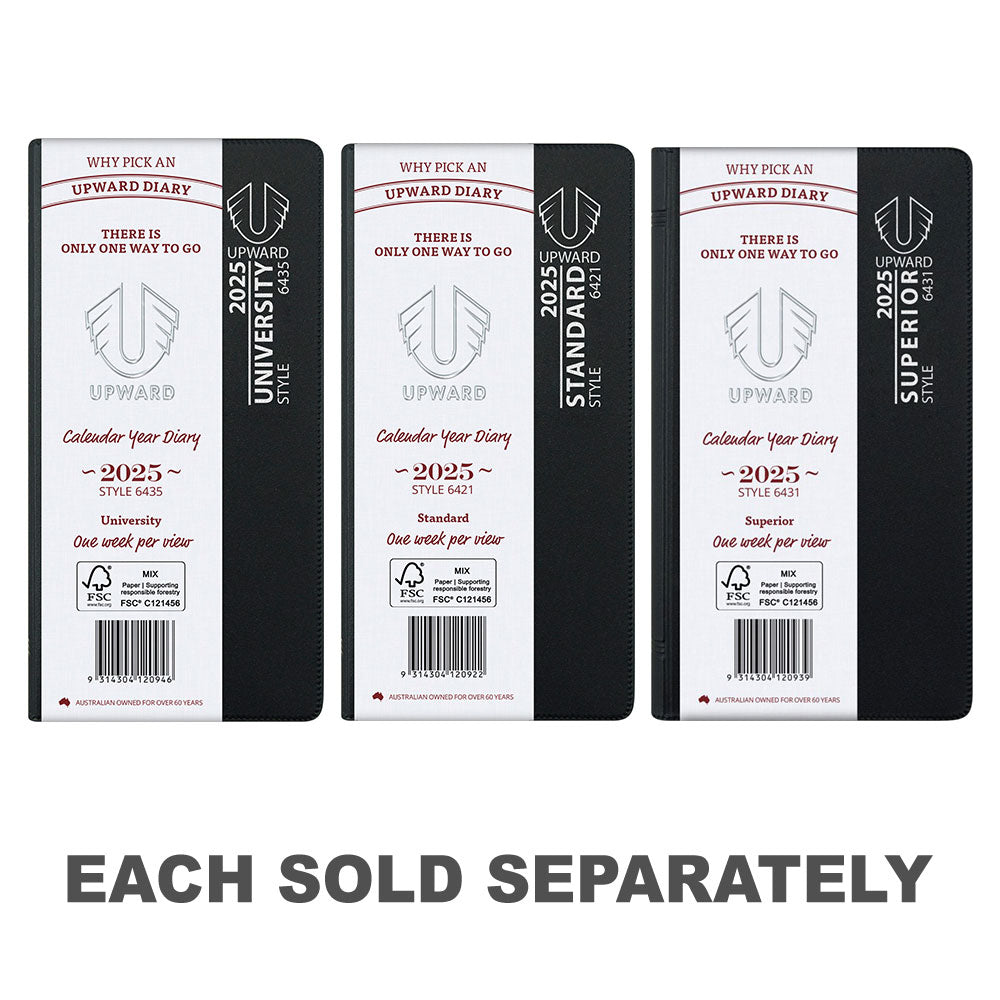 Upward PVC Cover WTV 2025 Diary 148x74mm (Black)